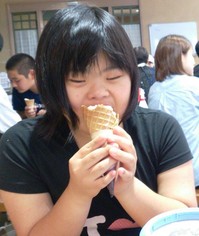 出来上がるのが待ちきれない様子でした。手作りアイスをコーンに移して出来上がり。自分で作ったアイスをおいしくいただきました。