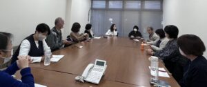 まず参加者の皆さんに長崎市育成会に入会したきっかけをお尋ねしました。1,わが子が通える事業所を作るため(創世記からの会員さん)2,子どもが小さい頃は福祉サービスが今ほど充実していなかったため育成会が行っていたタイムケアを利用したくて入会した(長年会員を続けていただいている方)3.他の障害のある子を持つ親御さんとの繋がりが欲しくて入会した(今年入会された方)4,特別支援学校の先輩から勧められ(選択の余地なく?(笑))深く考えずに入会した(長年会員を続けていただいている方)などさまざまなきっかけを聞くことが出来ました。今年新たに入会されたお二人の会員さんはお二人とも小学一年生のお子さんをお持ちのお母様ですが、「今はインターネット上に情報は溢れているけれど、知的障害のある子どもさんを育てられた先輩お母さんの生のお話や経験談、情報を聞けることがありがたい」と話されていました。